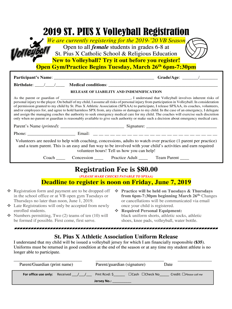 2019 ST. PIUS X Volleyball Registration We are currently registering for the 201920 VB Season Open to all female students in grades 68 at St. Pius X Catholic School & Religious Education New to Volleyball?