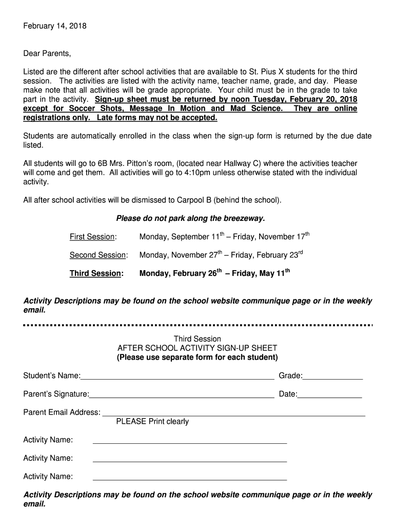 Listed are the different after school activities that are available to St. Pius X students for the third
