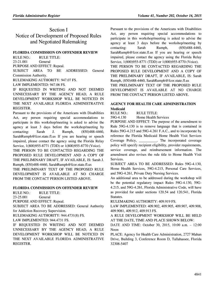 Florida Administrative RegisterSection I