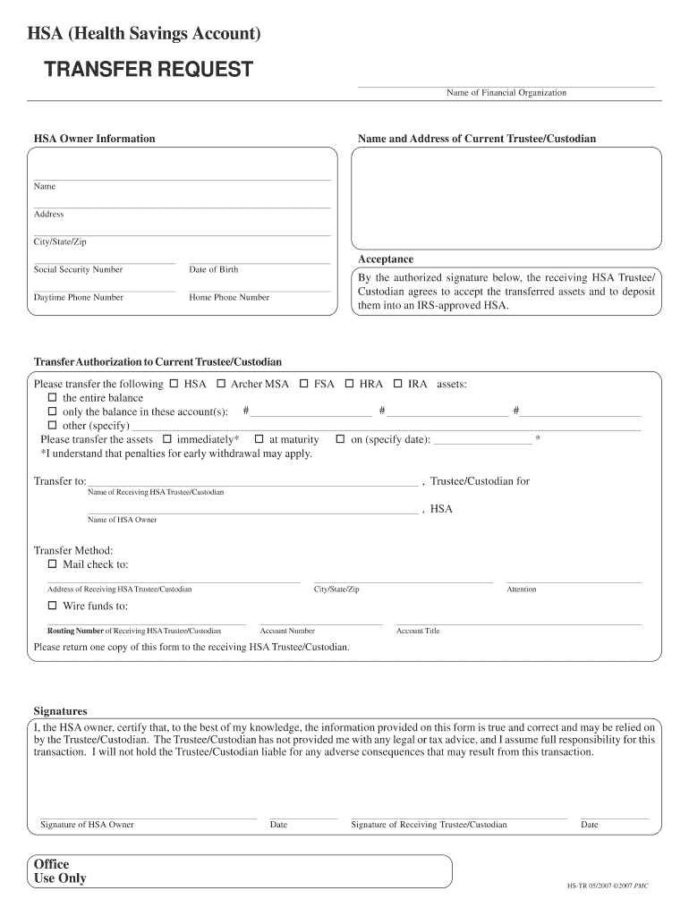 Get the free Health Savings Account Transfer Request Form - Associated ...