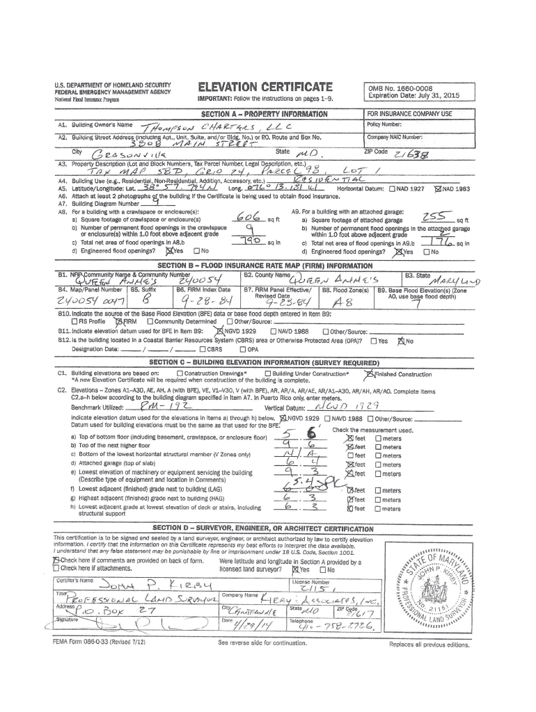 ELEVATION CERTIFICATE. S. DEPARTMENT OF HOMELAND SECURITY FEDERAL EMERGENCY MANAGEMENT AGENCY National Flood Immure ProgIDDIIMPORTANT:mstrucuonsFOllOWtheOMB No. 16600008 Expiration Date: July 31,