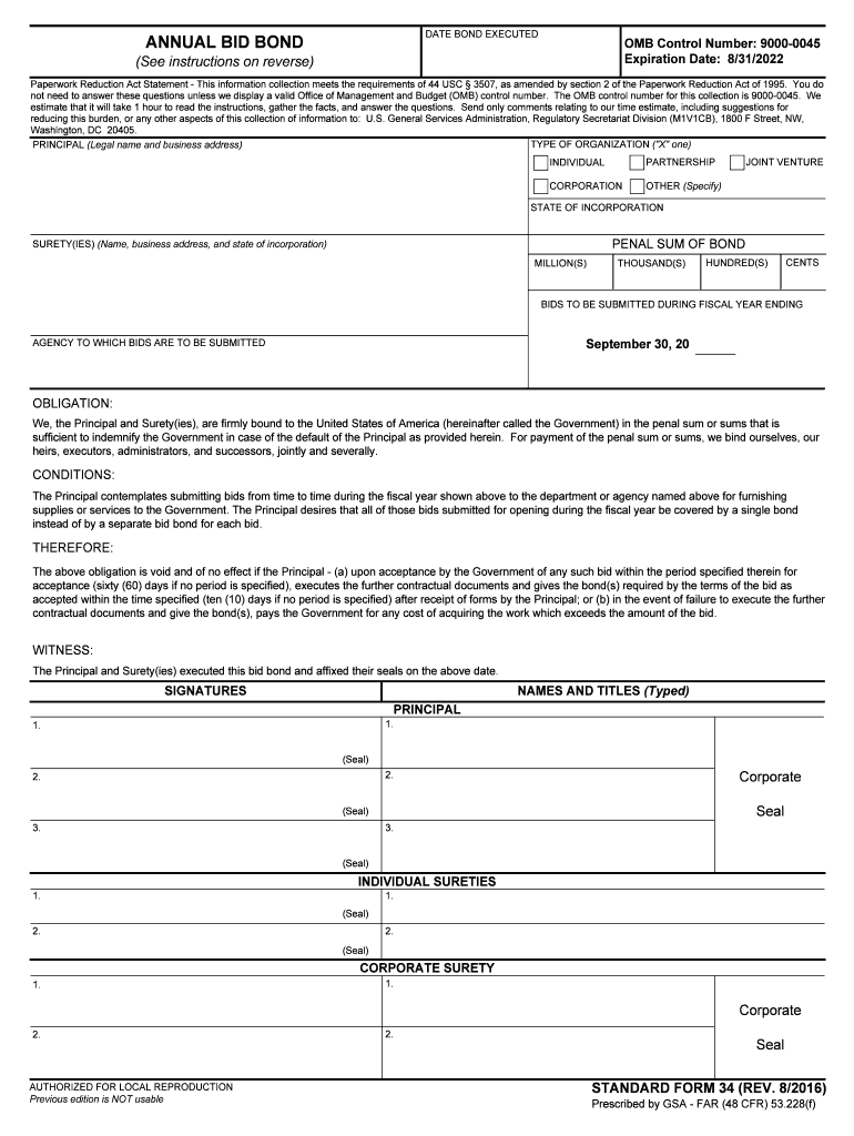 DATE BOND EXECUTEDANNUAL BID BOND OMB Control Number: 90000045 Expiration Date: 8/31/2022(See instructions on reverse)Paperwork Reduction Act Statement This information collection meets the requirements