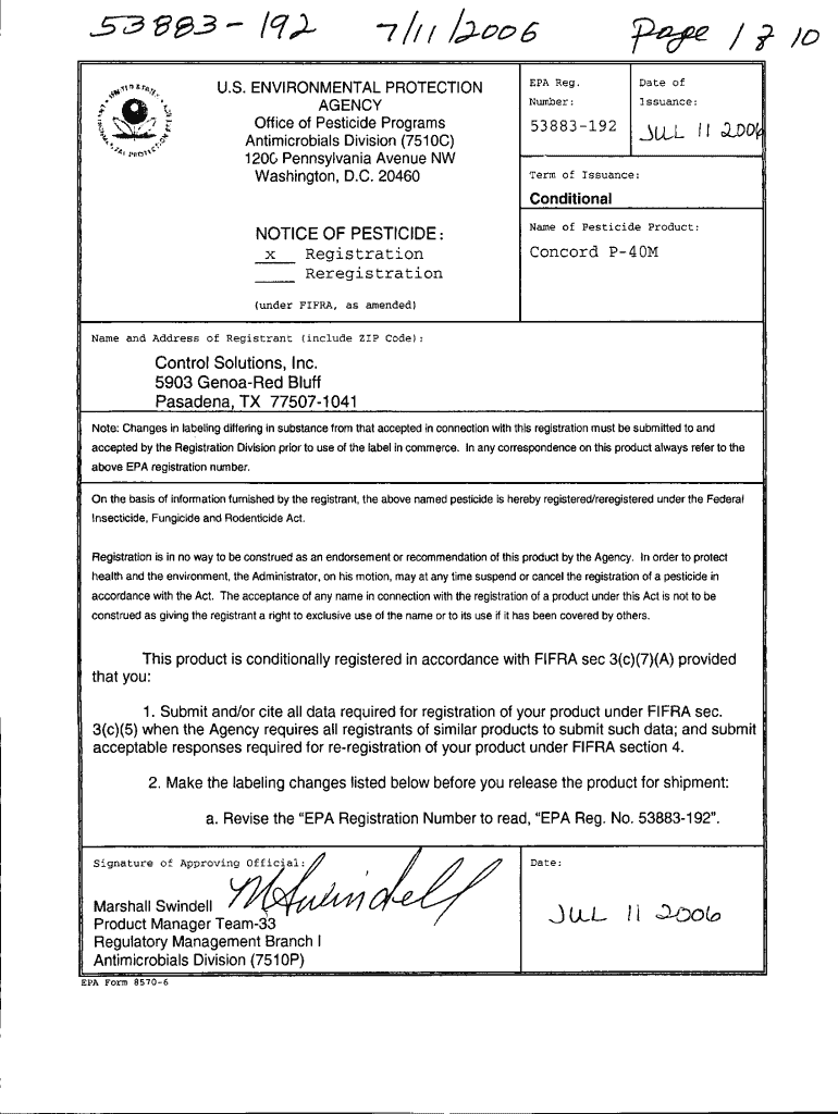 Get the free U.S. EPA, Pesticide Product Label, CONCORDE P-40M, 07/11/2006. Pesticide Product Lab...