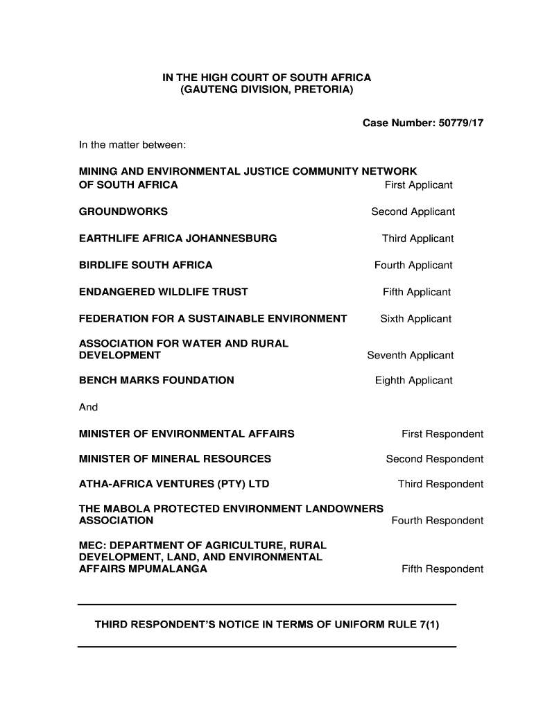 Get the free in the high court of south africa gauteng division, pretoria mining and ... - cer org