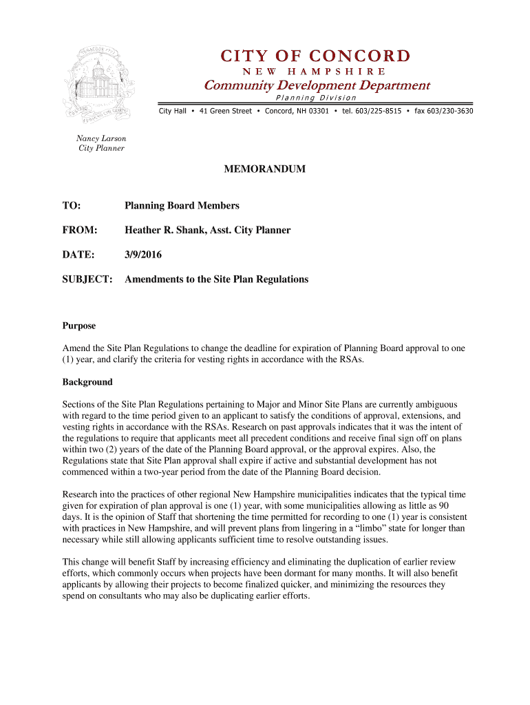 C IT Y OF CONE OR D N E WH A M P S H I RE Community Development Department Planning Divisibility Hall 41 Green Street Concord, NH 03301 tel. 603/2258515 fax 603/2303630Nancy Larson City PlannerMEMORANDUMTO:Planning