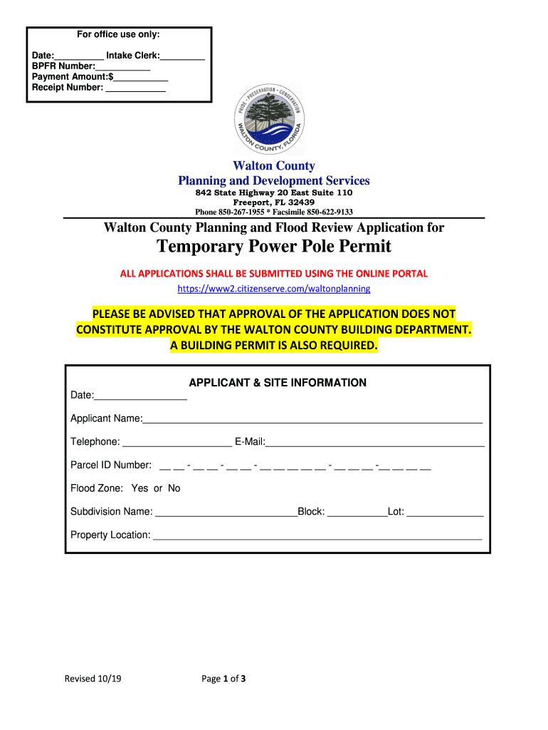 For office use only: Date: Intake Clerk: BFR Number: Payment Amount:$ Receipt Number: Walton County Planning and Development Services 842 State Highway 20 East Suite 110 Freeport, FL 32439 Phone 8502671955