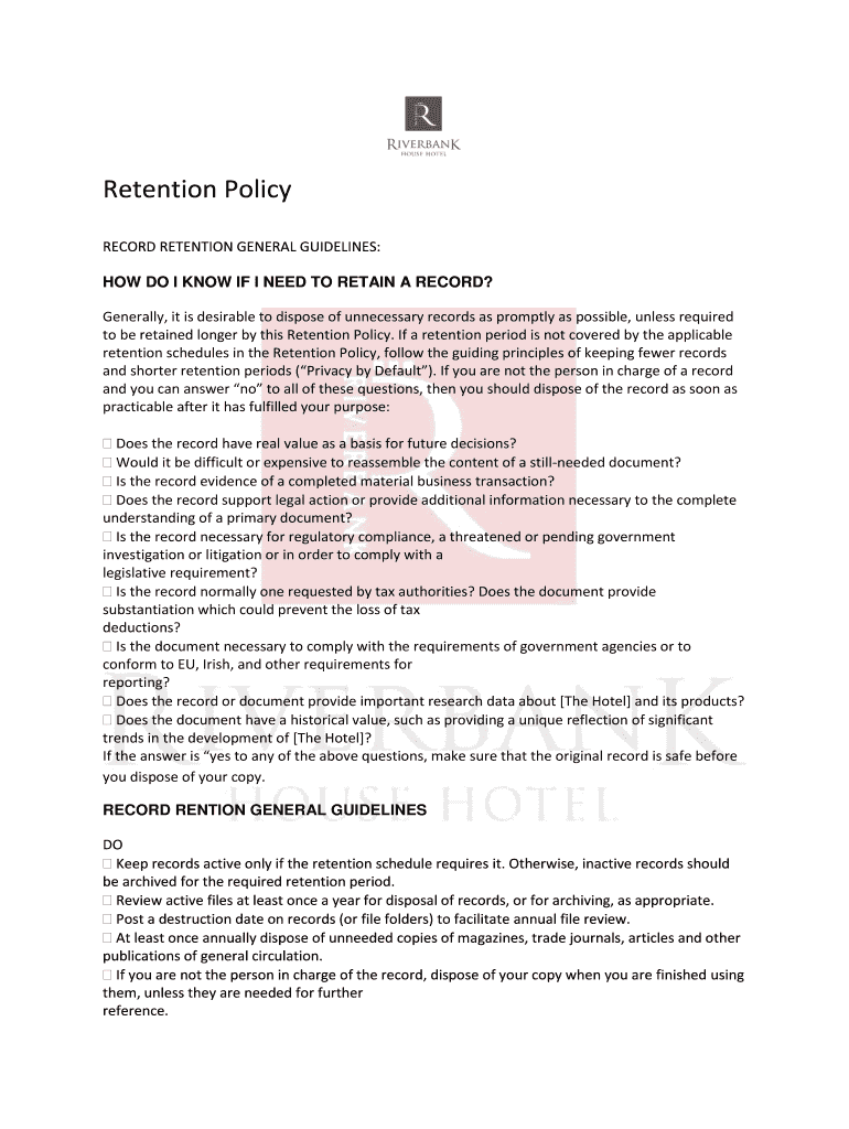 Record retention general guidelines can be filled out by identifying the types of records that need to be retained, determining the retention periods for each type of record, and documenting the disposal process.