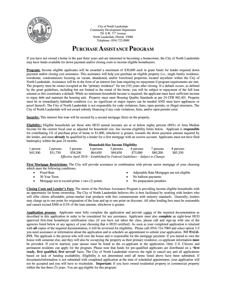 Telephone: (954) 7220900PURCHASE ASSISTANCE PROGRAM