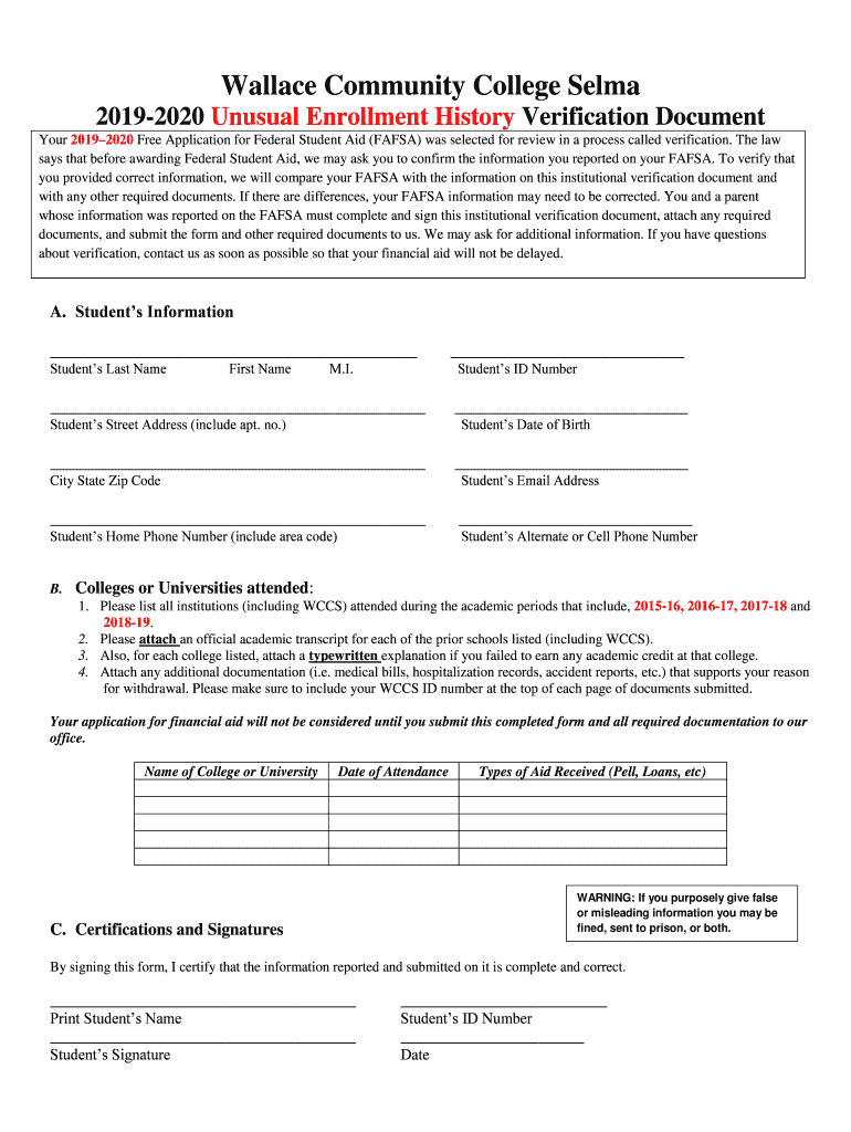 20192020 Unusual Enrollment History Verification Document