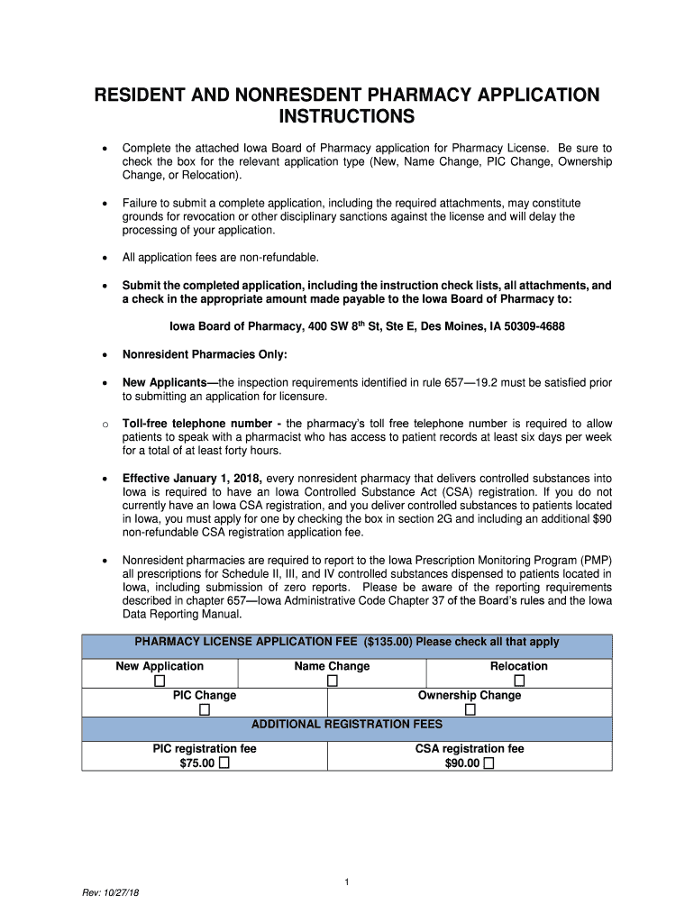 RESIDENT AND NONRESIDENT PHARMACY APPLICATION