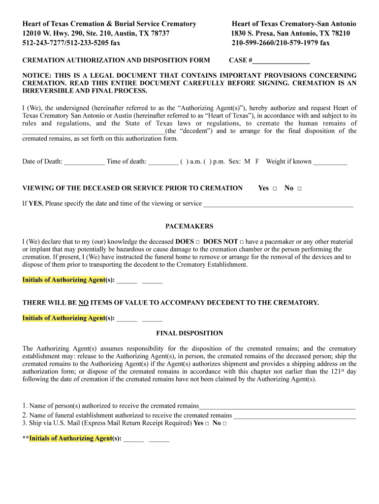 Legends fh cremation auth must include the full name of the deceased individual, date of birth, date of death, and the signature of the next of kin or legal representative.