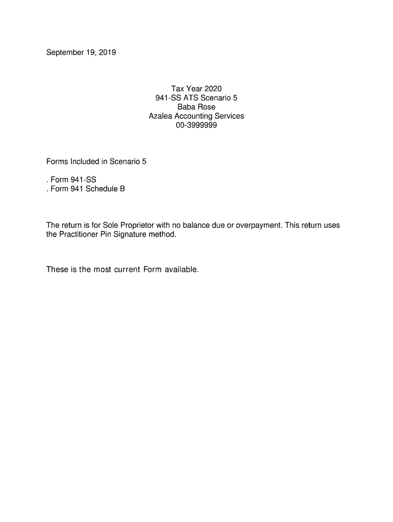 September 19, 2019Tax Year 2020 941SS ATS Scenario 5 Baba Rose Azalea Accounting Services 003999999Forms Included in Scenario 5. Form 941SS. Form 941 Schedule The return is for Sole Proprietor with
