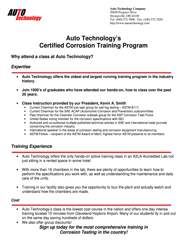 Auto Technology Company 20026 Progress Drive Strongsville, OH 44149 Tel: (440) 5727800 Fax: (440) 5727820 http://www.autotechnology.comAuto Technologies Certified Corrosion Training Program Why attend