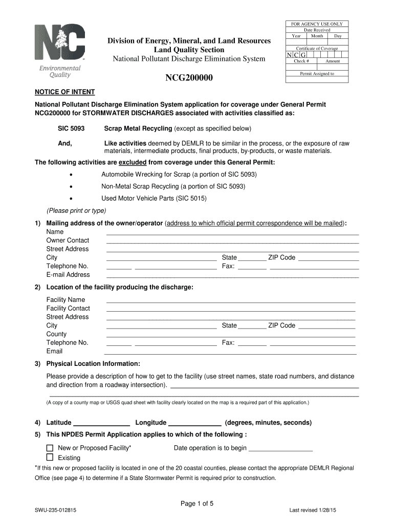 How to fill out ncg200000 permit assigned to