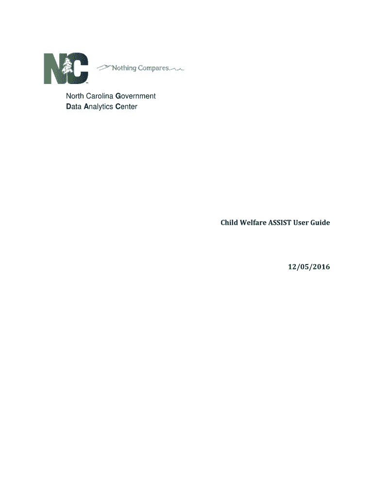 North Carolina Government Data Analytics Centerfold Welfare ASSIST User Guide12/05/2016Child Welfare ASSIST User Suitable of Contents INTRODUCTION ..................................................................................................