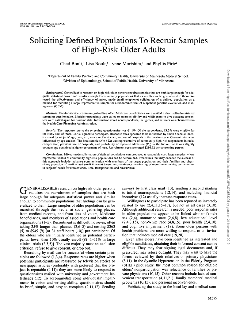 1998, Vol. 53A. No. 5, M379M384Copyright 1998 by The Hematological Society of AmericaSoliciting Defined Populations To Recruit Samples