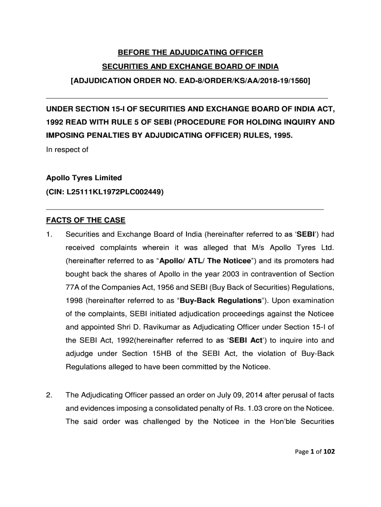 Get the free Securities and Exchange Board of India (hereinafter referred to as SEBI) had