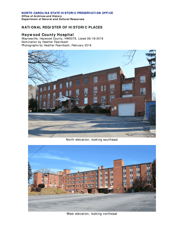 Department of Natural and Cultural ResourcesNATIONAL REGISTER OF HISTORIC PLACES Haywood County HospitalWaynesville, Haywood