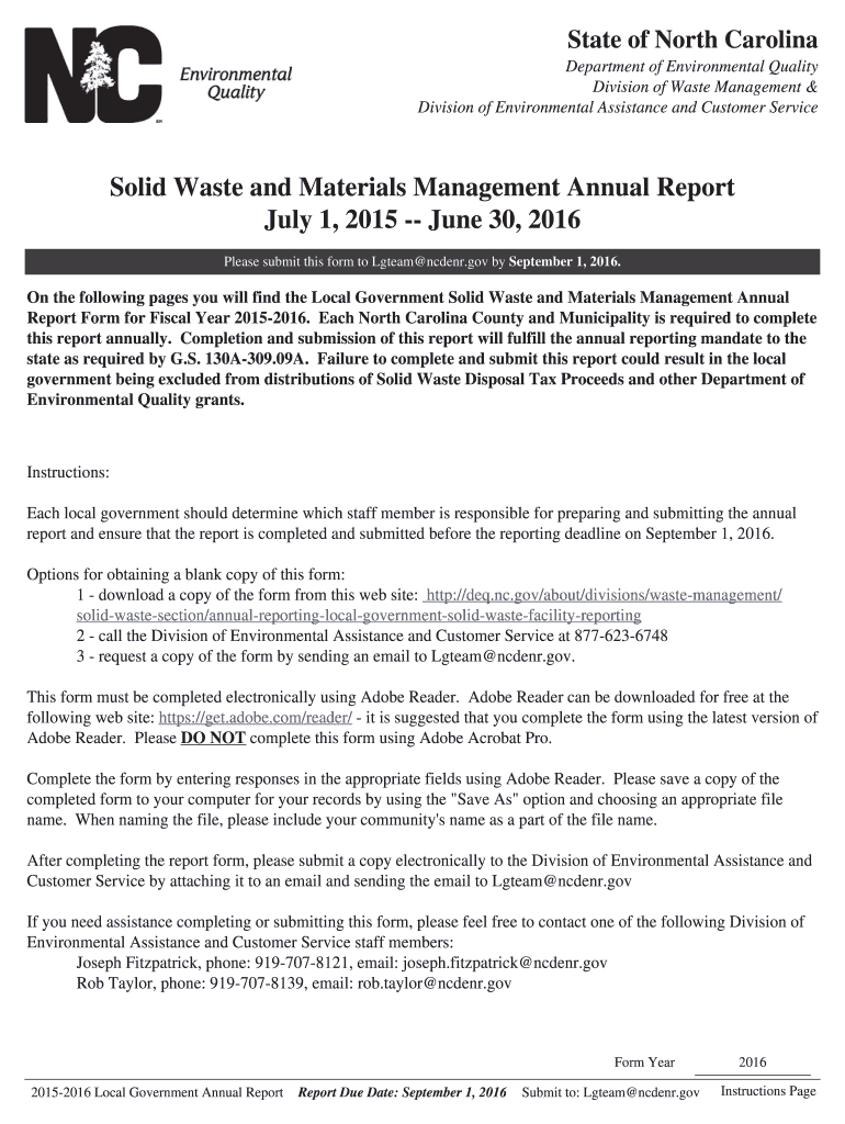 State of North Carolina Department of Environmental Quality Division of Waste Management & Division of Environmental Assistance and Customer ServiceSolid Waste and Materials Management Annual Report