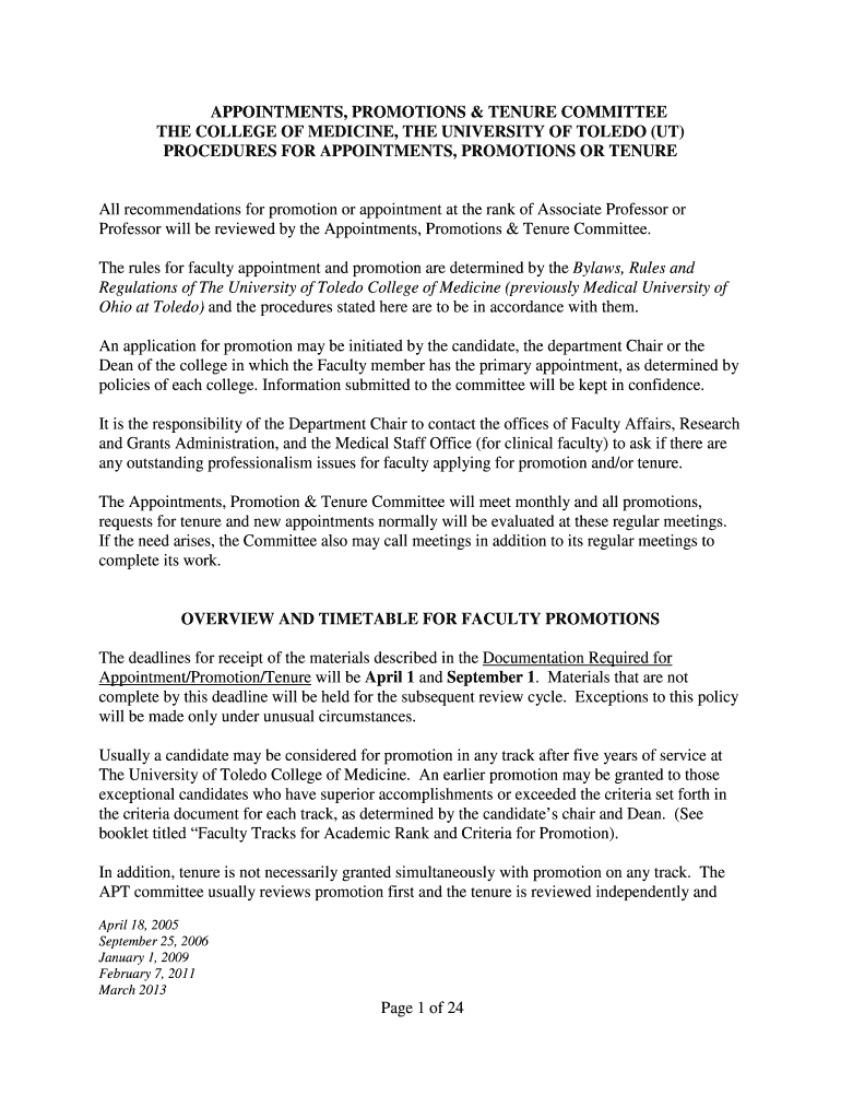 APPOINTMENTS, PROMOTIONS & TENURE COMMITTEE THE COLLEGE OF MEDICINE, THE UNIVERSITY OF TOLEDO (UT) PROCEDURES FOR APPOINTMENTS, PROMOTIONS OR Tenure recommendations for promotion or appointment at