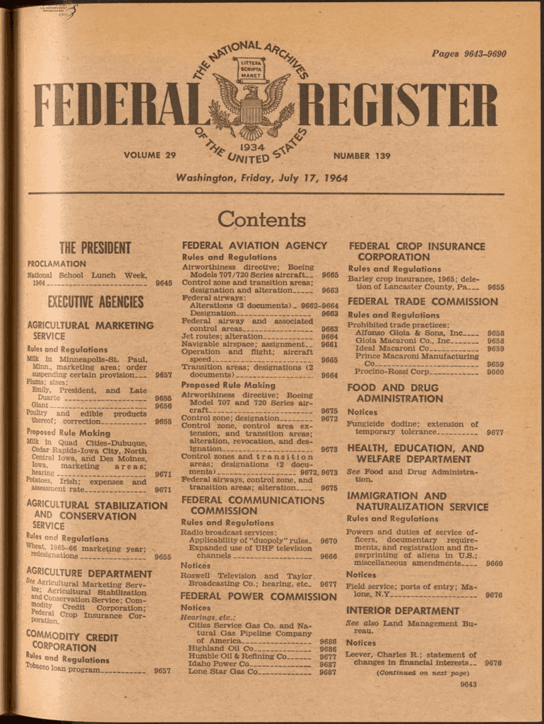 P a g BS 96439690REGISTER VOLUME 291934 NUMBER 139NlTP Washington, Friday, July 17, 1964Contents THE PRESIDENTFEDERAL AVIATION AGENCYRules a d Regulations PROCLAMATION Airworthiness directive; Boeing