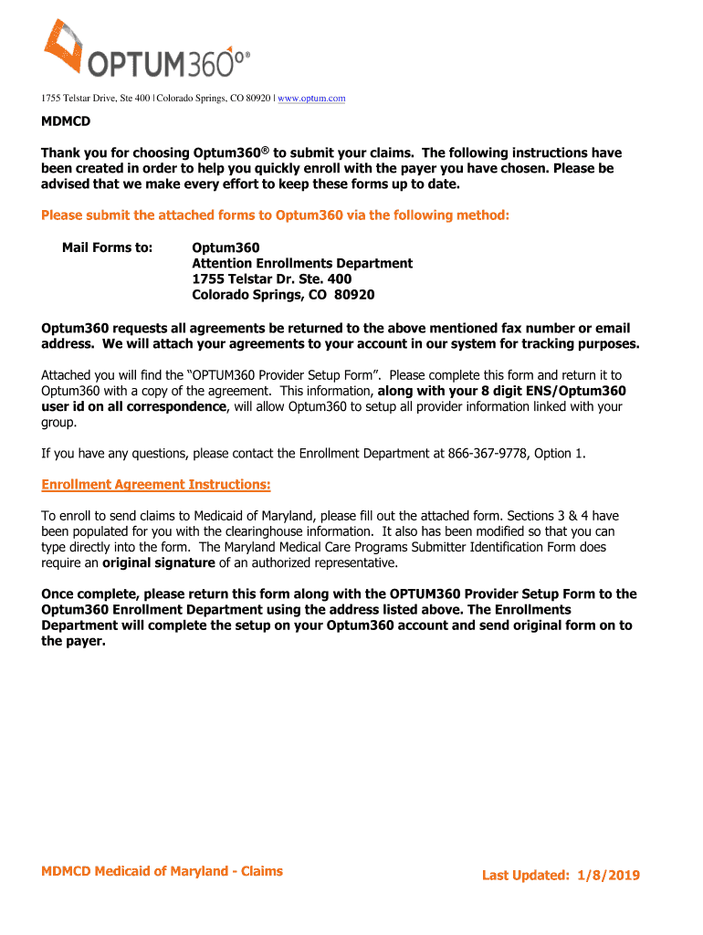 1755 Tel star Drive, Ste 400 Colorado Springs, CO 80920 www.optum.comMDMCD Thank you for choosing Optum360 to submit your claims. The following instructions have been created in order to help you