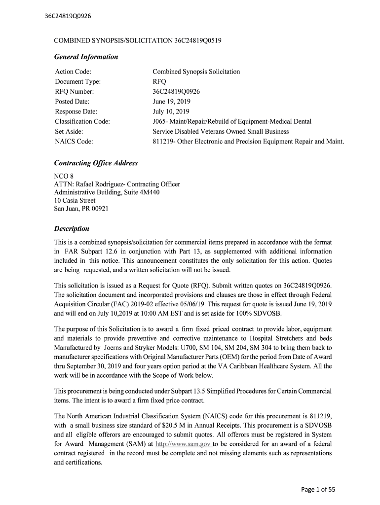 COMBINED SYNOPSIS/SOLICITATION 36C24819Q0519General Information