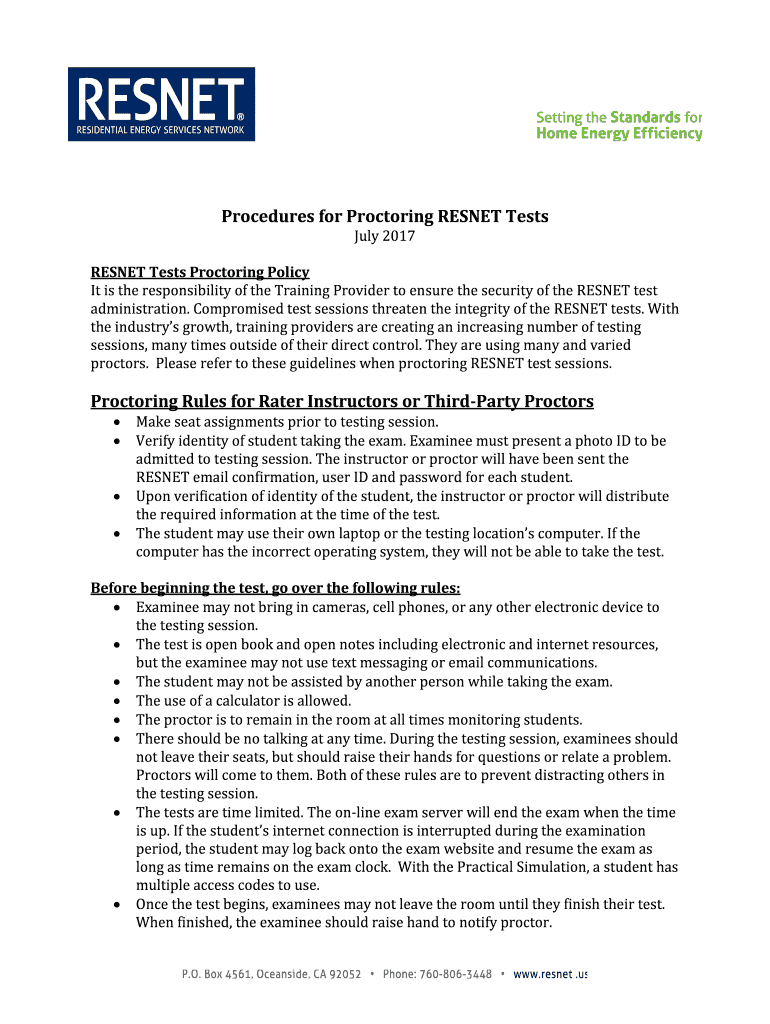 Get the free Procedures for Proctoring RESNET Tests Proctoring Rules for ...