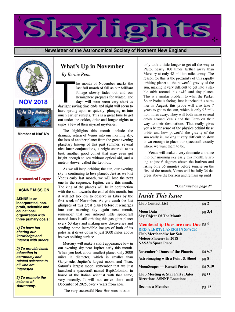 Page 1SkylightsNewsletter of the Astronomical Society of Northern New EnglandWhats Up in November