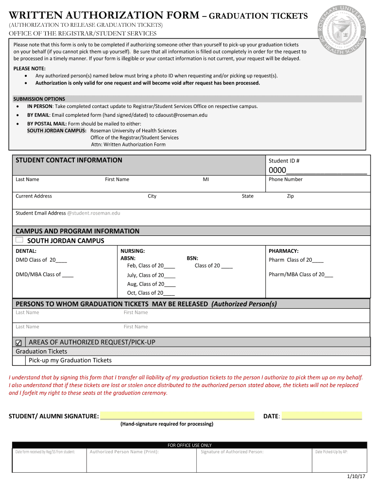 Get the free written authorization form - Roseman University of Health ...