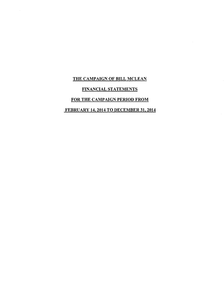 THE CAMPAIGN OF BILL McLean FINANCIAL STATEMENTS FOR THE CAMPAIGN PERIOD FROM FEBRUARY 14, 2014, TO DECEMBER 31, 20141HurfEf1AiilSINCLAIROld Liston RoMOnranoL1T '!. Hotel. 90 'i 683 8856 F. 905 683