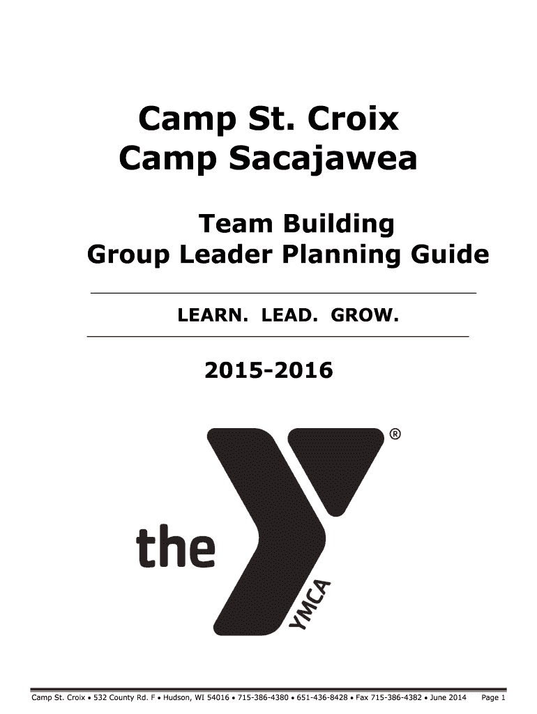 Camp St. Croix Camp Sacajawea Team Building Group Leader Planning Guide LEARN. LEAD. GROW.20152016Camp St. Croix 532 County Rd. F Hudson, WI 54016 7153864380 6514368428 Fax 7153864382 June 2014Page