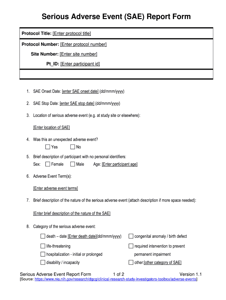 Get the free SERIOUS ADVERSE EVENT (SAE) REPORT FORM Guidelines for ...