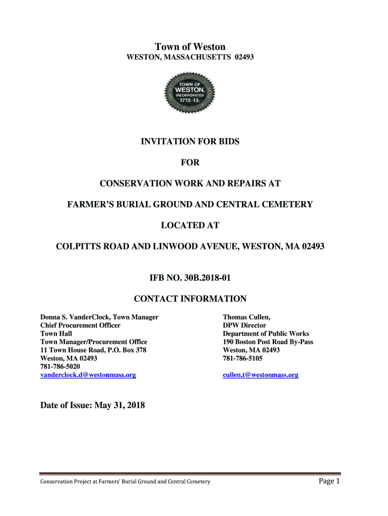 Town of Weston, MASSACHUSETTS 02493INVITATION FOR BIDS