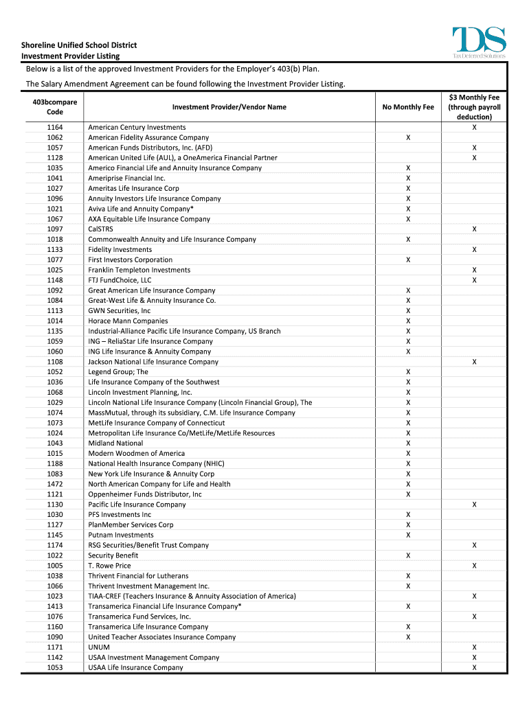 BelowisalistoftheapprovedInvestmentProvidersfortheEmployers403(b)Plan. TheSalaryAmendmentAgreementcanbefoundfollowingtheInvestmentProviderListing.