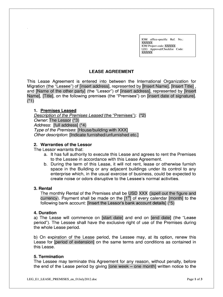 .IOM office specific Ref. No.: XXXIX IOM Project code: XXXIX LEG Approval/Checklist Code: XXXXXLEASE AGREEMENT This Lease Agreement is entered into between the International Organization for Migration