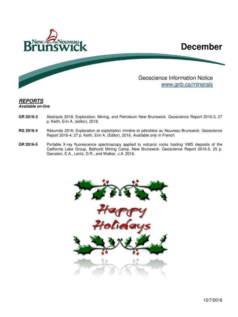 GR 20163Abstracts 2016: Exploration, Mining, and Petroleum New Brunswick. Geoscience Report 20163, 27