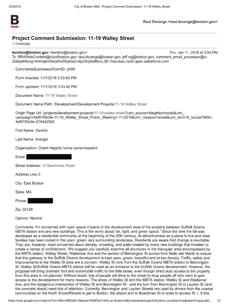 2/5/2018City of Boston Mail RE: Small Project Review Application (SPA) Submission Notice 1119 Valley Street, East Boston Raul Diverge Raul. Diverge Boston. Gore: Small Project Review Application (SPA)