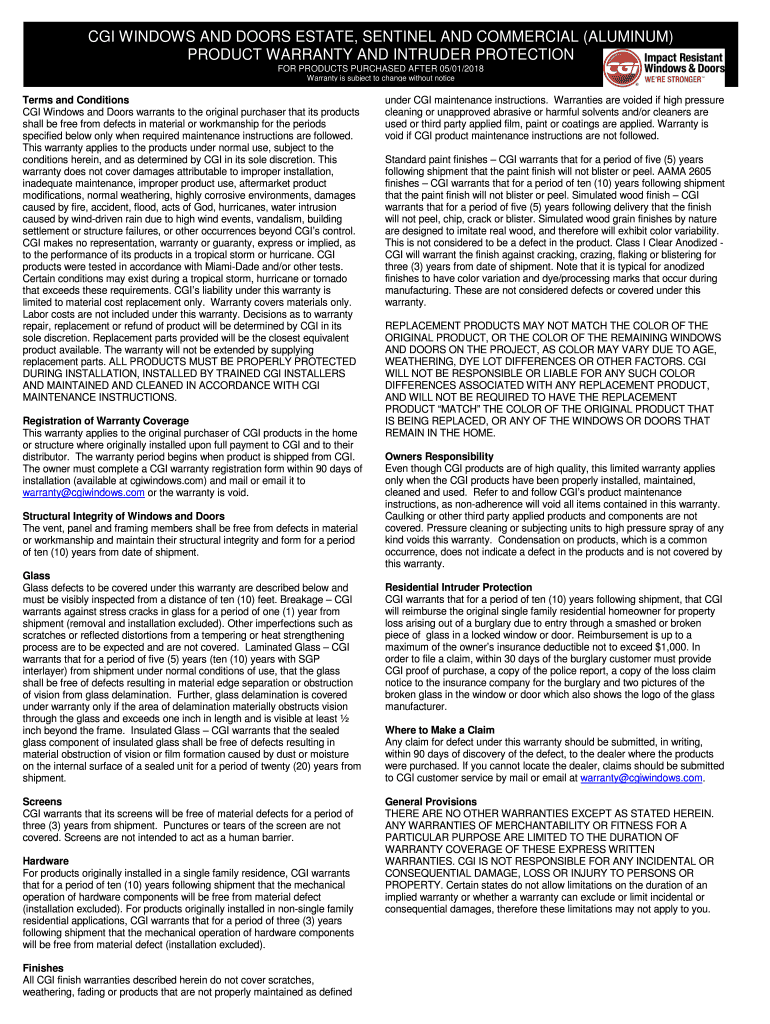 Get the free (aluminum) product warranty and intruder protection - CGI ...