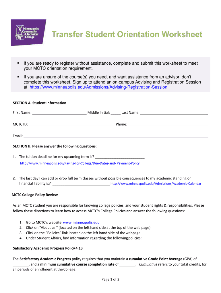 How to fill out transfer student orientation worksheet