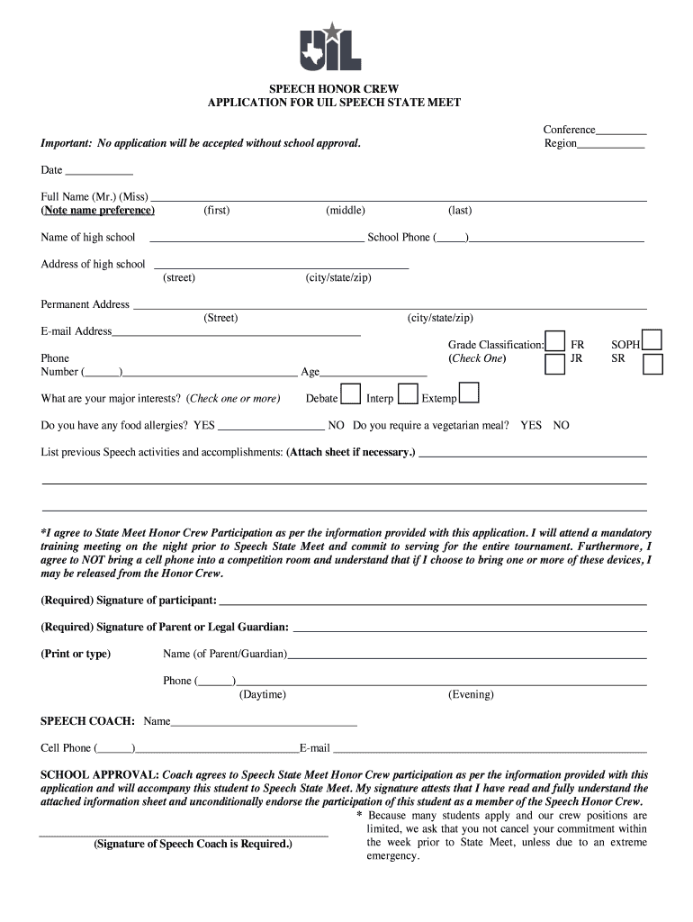 Edit university interscholastic league state. Rearrange and rotate pages, insert new and alter existing texts, add new objects, and take advantage of other helpful tools. Click Done to apply changes and return to your Dashboard. Go to the Documents tab to access merging, splitting, locking, or unlocking functions.