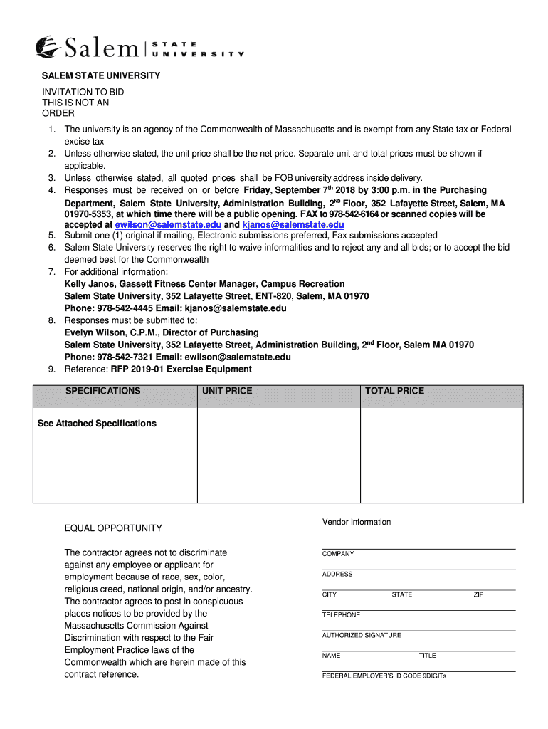 Get the free 2019-01 Exercise Equipment - RFP.pdf - Salem State ... - records salemstate