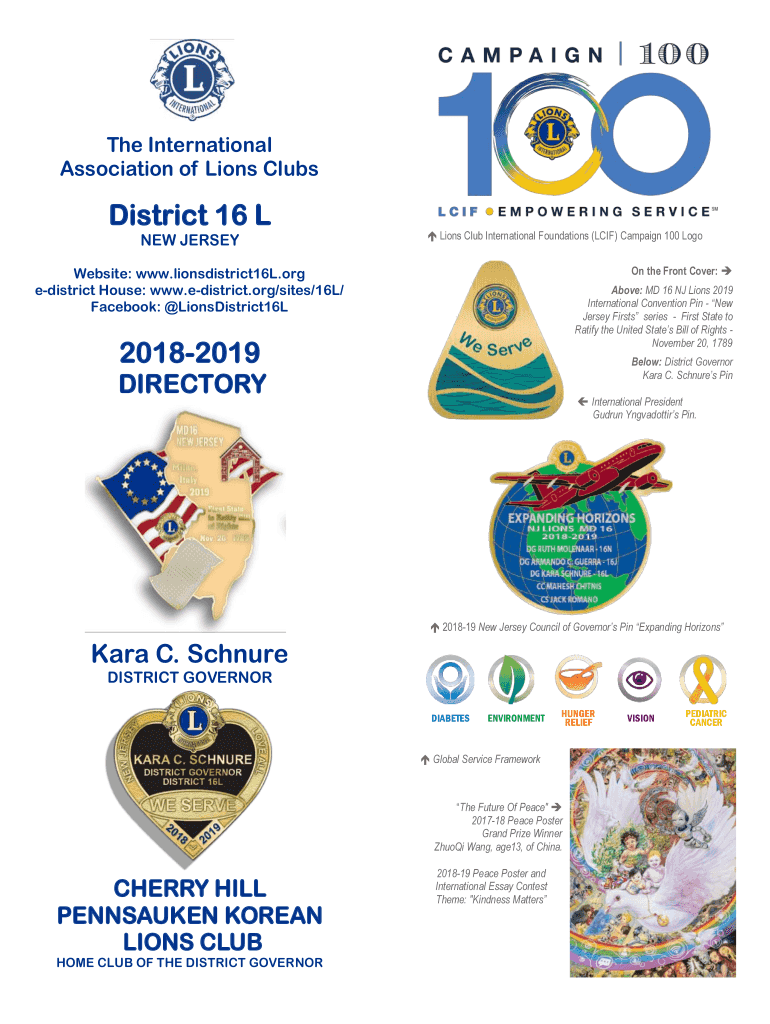 The International Association of Lions ClubsDistrict 16 L NEW JERSEY Lions Club International Foundations (LEIF) Campaign 100 Logo On the Front Cover: Website: www.lionsdistrict16L.org district House:
