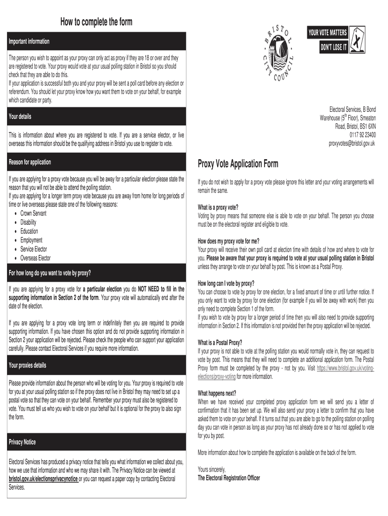 Complete the form. Provide the required information, such as your name, contact details, and the name of your proxy.