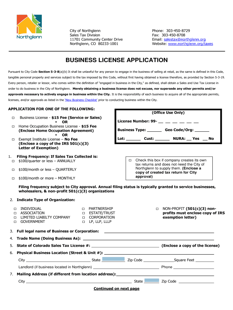 Get the free Business License-City of Northglenn