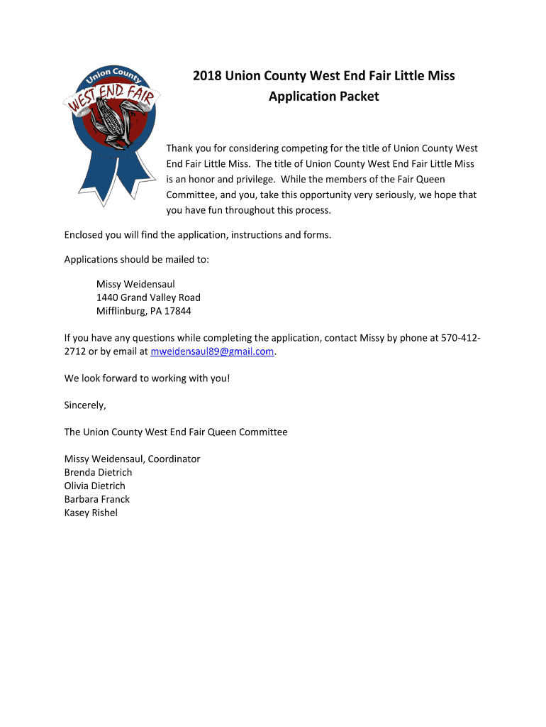 Application PacketThank you for considering competing for the title of Union County West