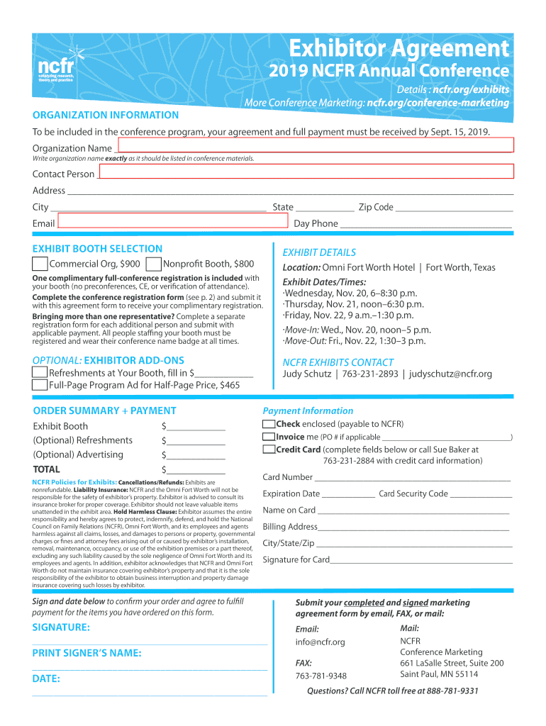 NATIONAL COUNCIL ON FAMILY RELATIONS2019 CFR Annual Conference Nov. 2023, 2019 Fort Worth, Texas OFNI HotelPromote your organization at thence Conference Exhibits ncfr.org/exhibits ncfr.org/conferenceSign