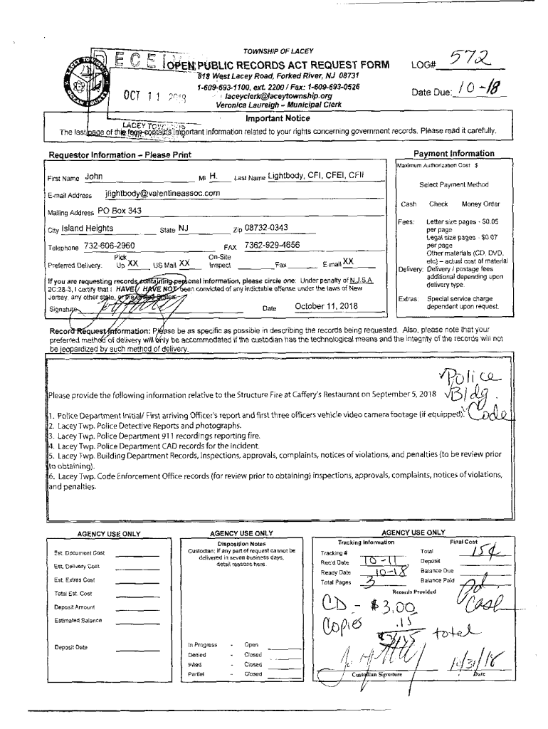 R, amiss. Township OF LACEYUOfSEkPUBLIC RECORDS ACT REQUEST FORMING×818 West Lacey Road, Forked River, NJ 08731III h.it1 609 693 1100,Oct too+ext 2200/ Fax: 1 609 693 0526 salesclerk laceytownship.