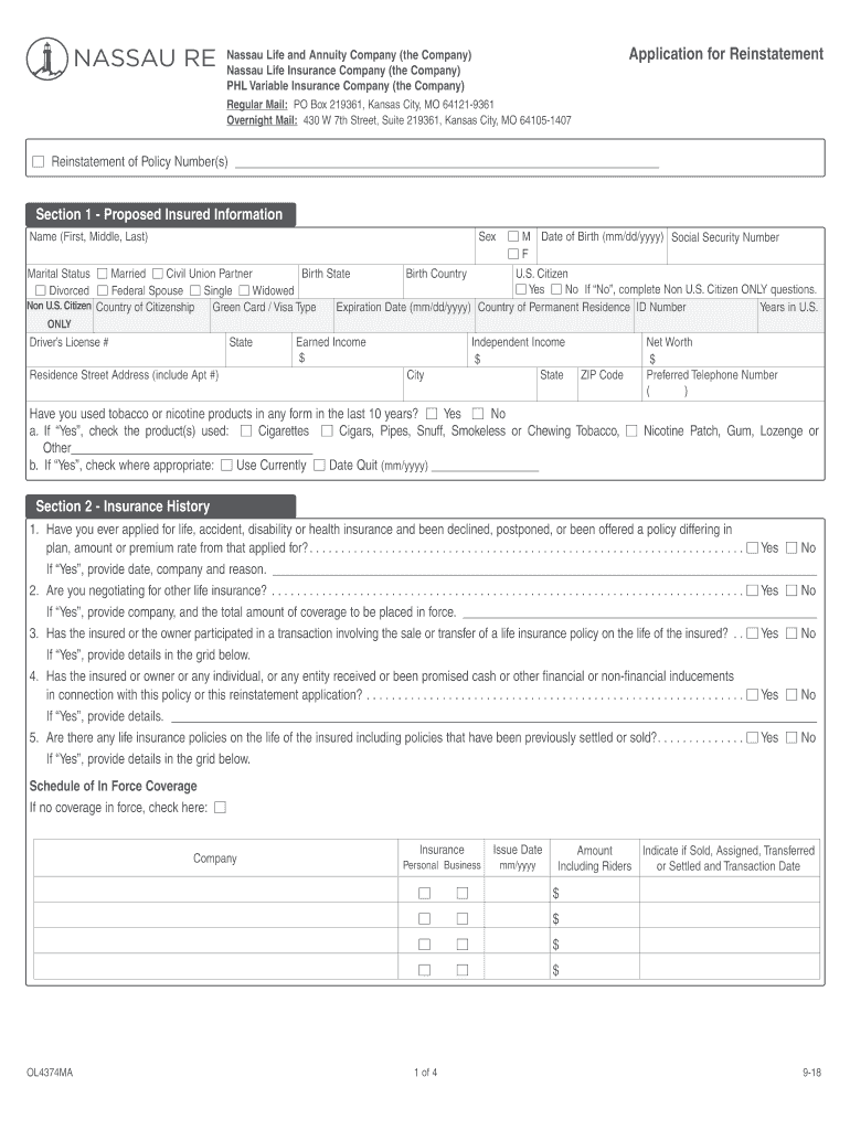 Get the free now, Nassau Life Insurance Company - Department of ...