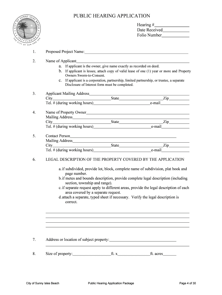 PUBLIC HEARING APPLICATION PACKAGE Planning & Zoning Department 10302018CITY OF SUNNY ISLES BEACH DEVELOPMENT REVIEW PROCESS City Code Sec. 26511PREAPPLICATION CONFERENCE WITH CITY STAFFCOMPLETE APPLICATION